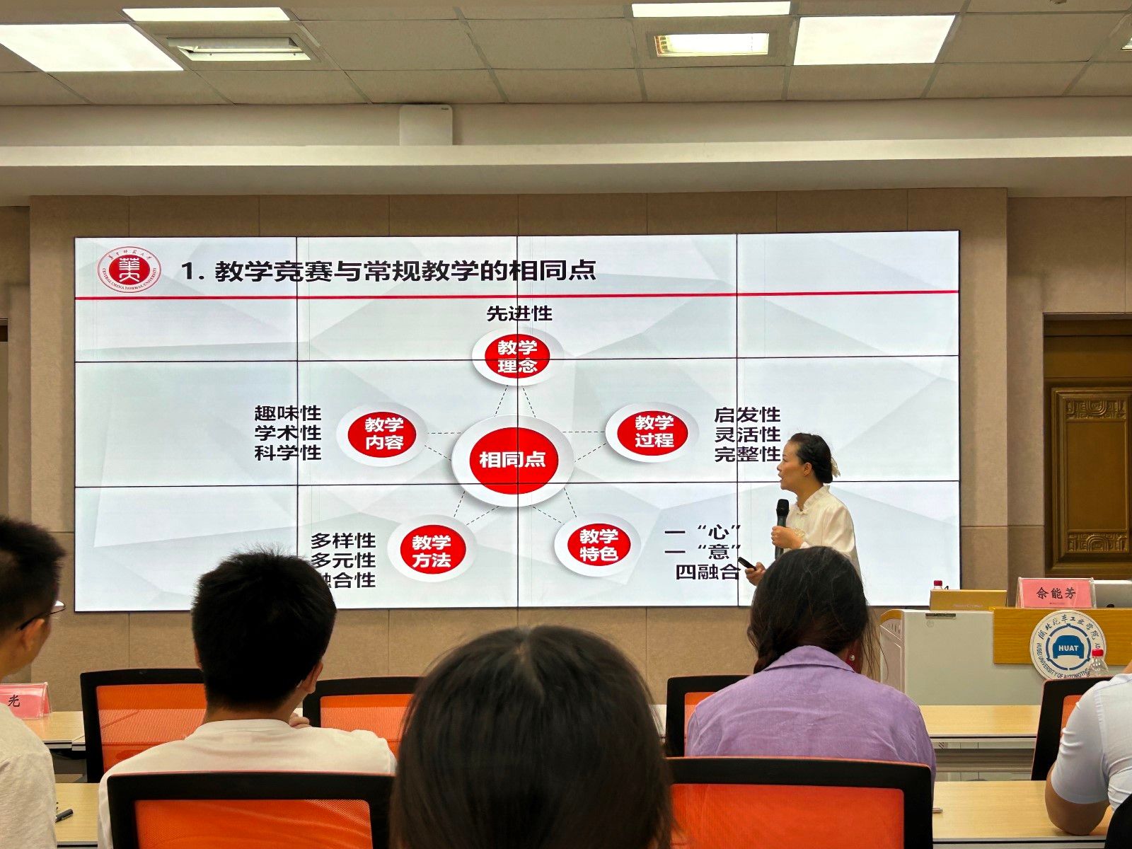 在长达近3个小时的报告中,佘教授围绕教学竞赛与常规竞赛的异同点、怎样准备教学竞赛、BOPPPS教学设计要点、课堂教学设计与技巧、教学竞赛的心得体会等五个方面向与会老师详细介绍基于BOPPPS的教学设计理念和方法,并结合自身经历,毫无保留地从教学理念设计、教学内容重构、BOPPPS设计要点、课程思政、青教赛评分细则、竞赛材料准备、课堂教学要点等方面进行经验传授。中午又针对前来咨询青教赛的老师,一对一指导,并对各位老师提出了切实可行的建议。