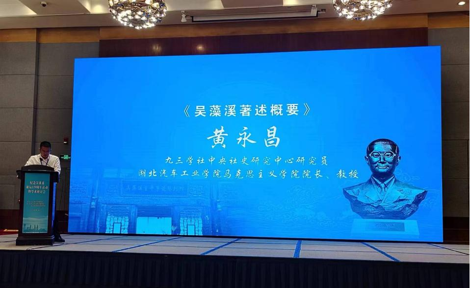 本网讯(文 詹苗/图 王莽莽)6月13日,纪念吴藻溪诞辰120周年活动暨学术研讨会在重庆召开,全国政协副主席、九三学社中央常务副主席邵鸿出席活动并讲话。beat365人文学院院长黄永昌教授应邀参加了此次活动,并作了题为《吴藻溪著述概要》的主题发言。