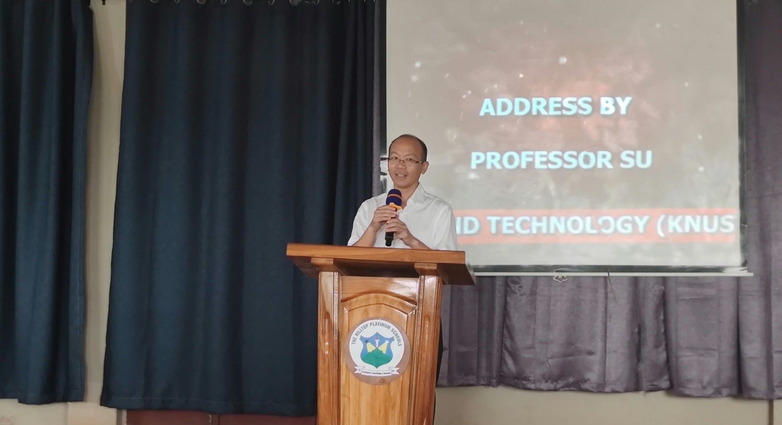 山顶白金学校创始人塞西莉亚-阿吉耶-阿莫亚科女士(Cecilia Agyei Amoako)热烈欢迎苏子波一行的到来。她表示该校很荣幸成为孔子学院的第二个教学点,并将全力支持孔子学院在山顶白金学校开展中文教学工作。