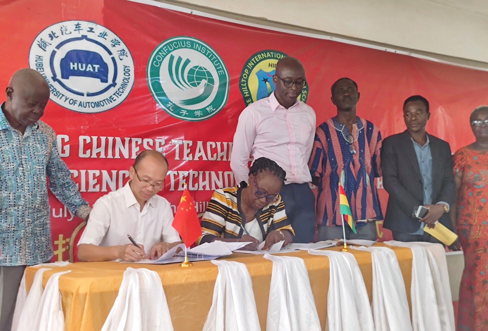 随后,双方签署中文教学点合作协议并合影留念。本次签约仪式得到加纳政府权威媒体——加纳时报(The Ghanaian Times)和加纳通讯社(The Ghana News Agency)的现场报道。