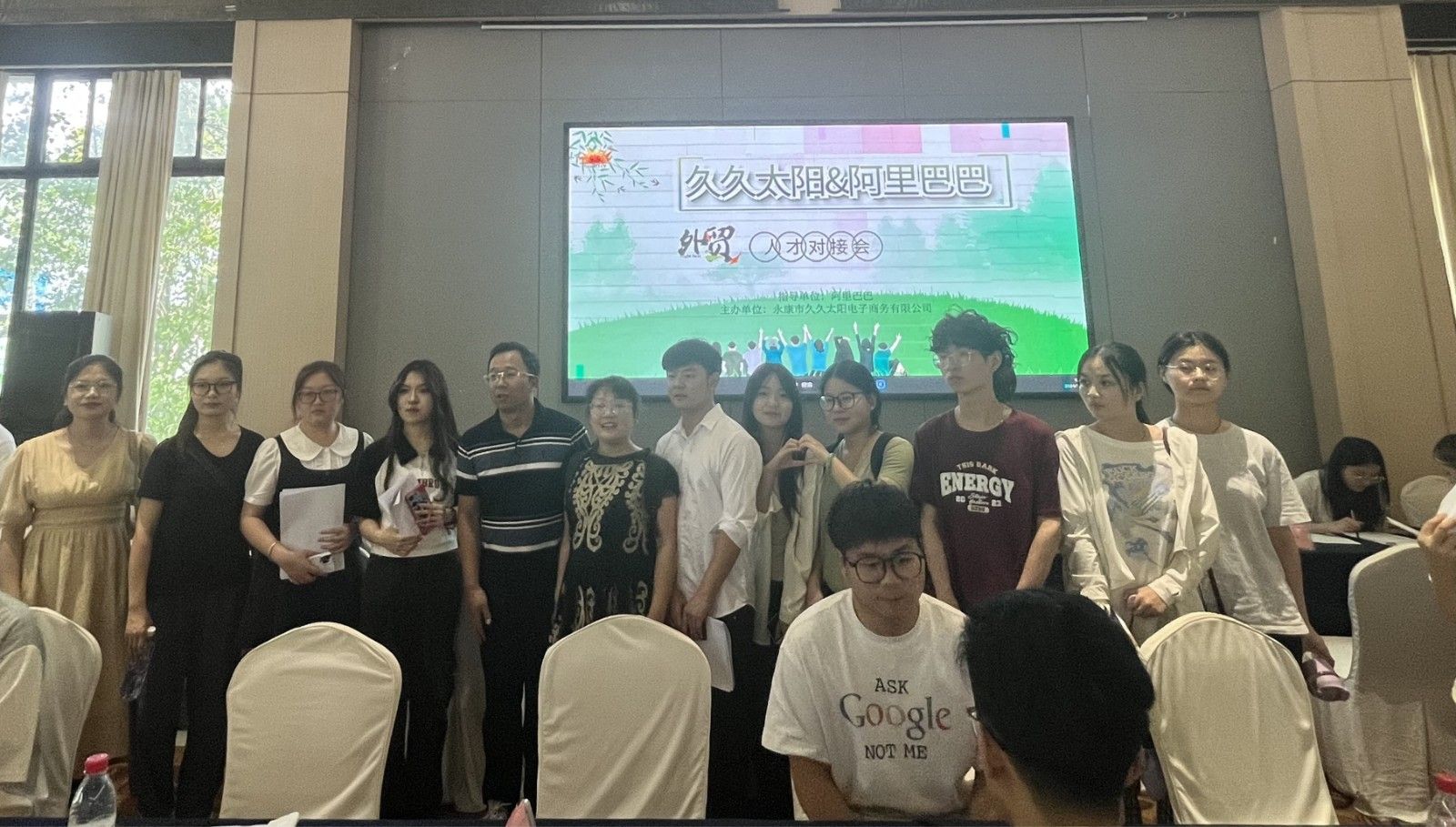 7月16日,翟全伟、王吟等在永康参加了久久太阳&阿里巴巴联合举办的外贸人才对接会,并与此次参加外贸实习的21位外院学子展开对谈,鼓励学生不畏艰难,踏实肯干,真正将“实习+就业”工作落实到实处。此次赴浙江省永康市实习是外国语学院自疫情以来,第一次开展在省外实习的工作。