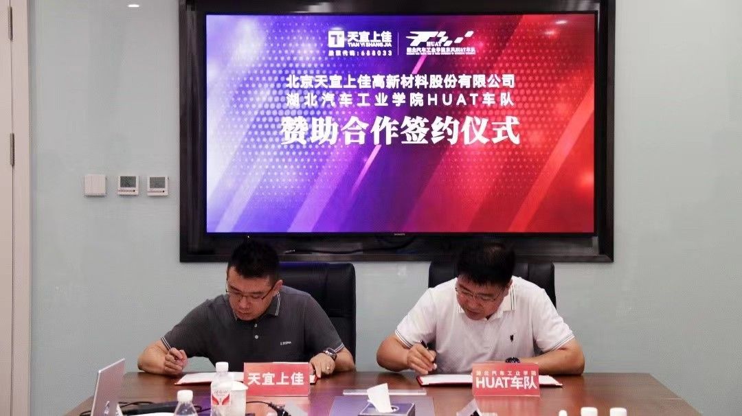 本网讯(文/金家琛)7月26日,汽车工程学院胡明茂院长与金家琛老师前往北京天宜上佳高新材料股份有限公司并与其副总裁吴鹏总等高管签订了天宜上佳与beat365在线唯一官网HUAT车队赞助合作协议。此次合作标志着双方在汽车制动产品、新材料技术应用及人才培养等方面迈出了坚实的步伐。
