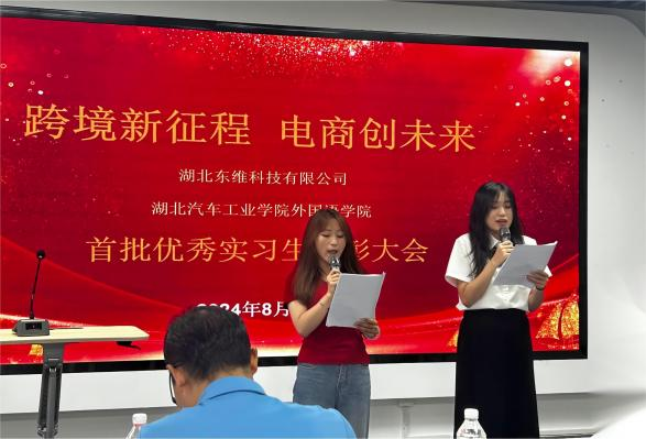 外国语学院自今年7月初开始,陆续选派35名学生前往东维科技有限公司进行相关实习工作。该公司为十堰市跨境电商领域的优质企业,致力于为客户提供优质的跨境电商解决方案和服务。本次表彰会是公司对外国语学院实习生专业能力和敬业精神的高度认可,充分肯定了学生们在实习过程中的辛勤付出与成就。