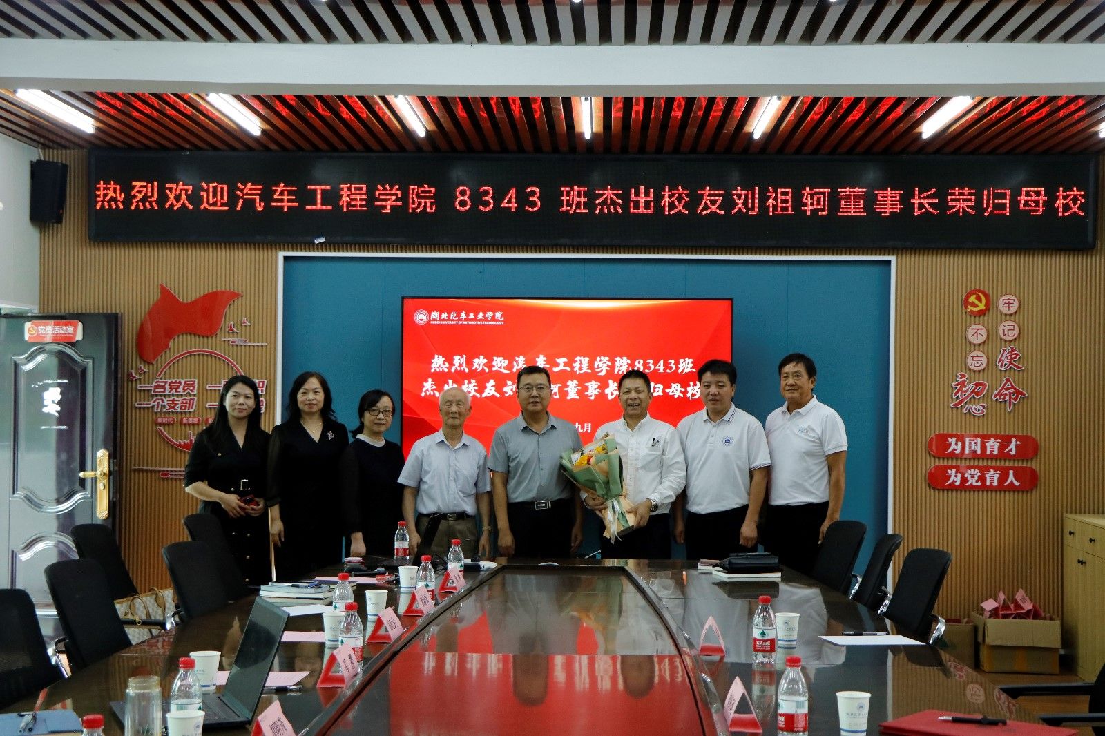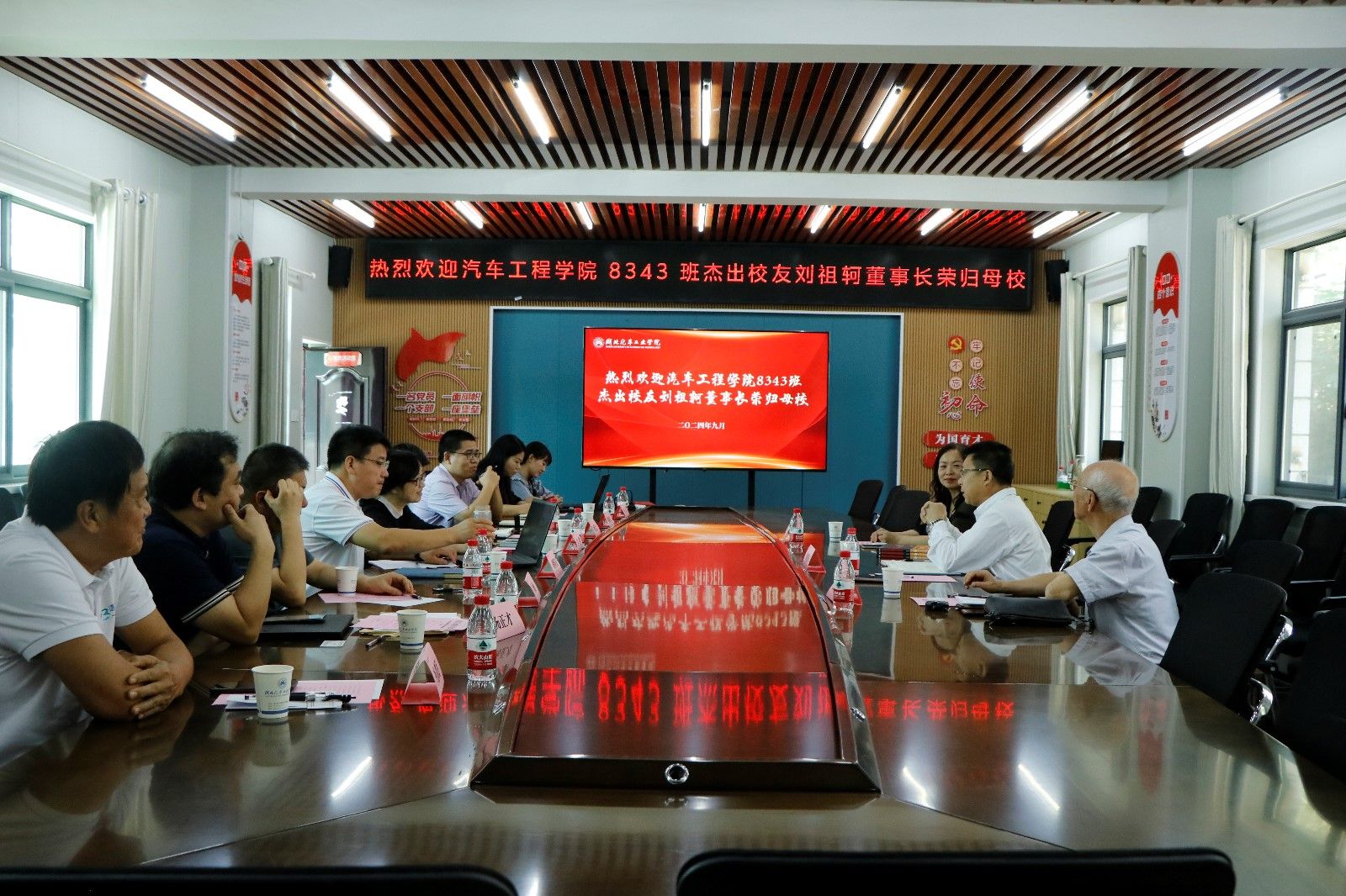 本网讯(文曹闪闪/图 王家乐、谷晨曦)9月19日,汽车工程学院8343班优秀校友、刘祖轲回访母校汽车工程学院,与学院班子成员和教师代表在二楼会议室进行亲切座谈。