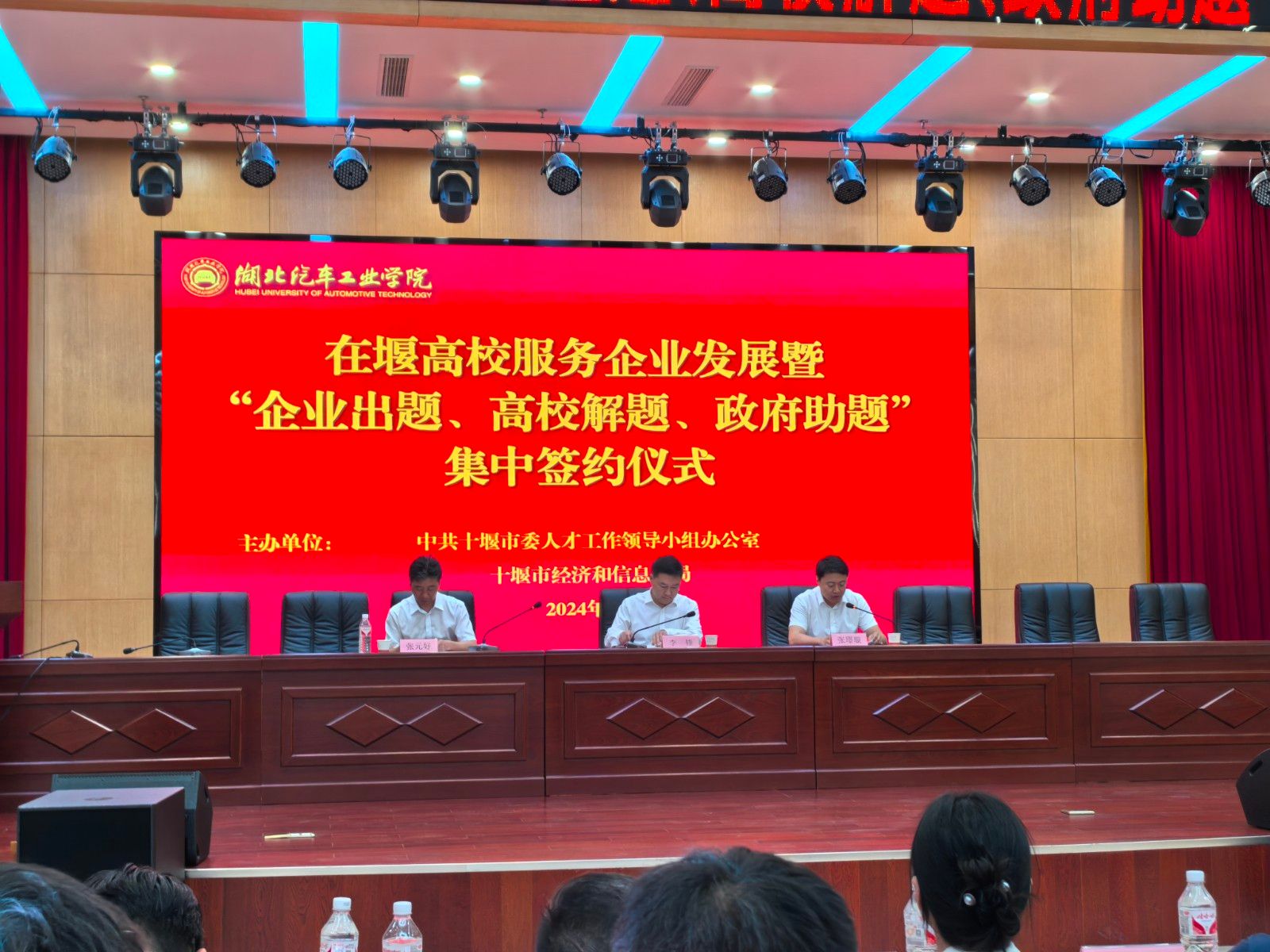 本网讯(文/图 陈定怡)9月25日,由中共十堰市委人才工作领导小组办公室、十堰市经济和信息化局主办,beat365在线唯一官网承办的“在堰高校服务企业发展暨企业出题、高校解题、政府助题集中签约仪式”在beat365在线唯一官网成功举办。