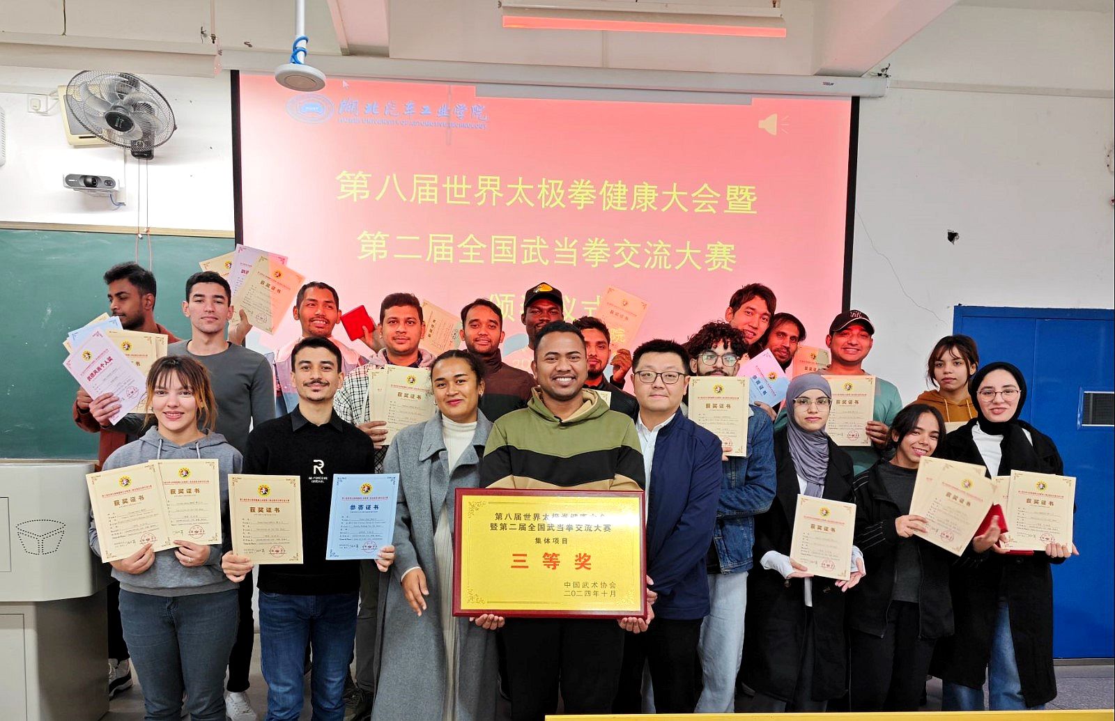 本网讯(文 张婷婷/图 张晨阳)10月21日,国际合作交流处在校举行第八届世界太极拳健康大会暨第二届全国武当拳交流大赛颁奖仪式。beat365留学生队伍在团体项目中表现出色,喜获团体三等奖2项。其中,5名运动员凭借突出的表现荣获二等奖,9名运动员荣获三等奖,6名运动员获得优秀奖。