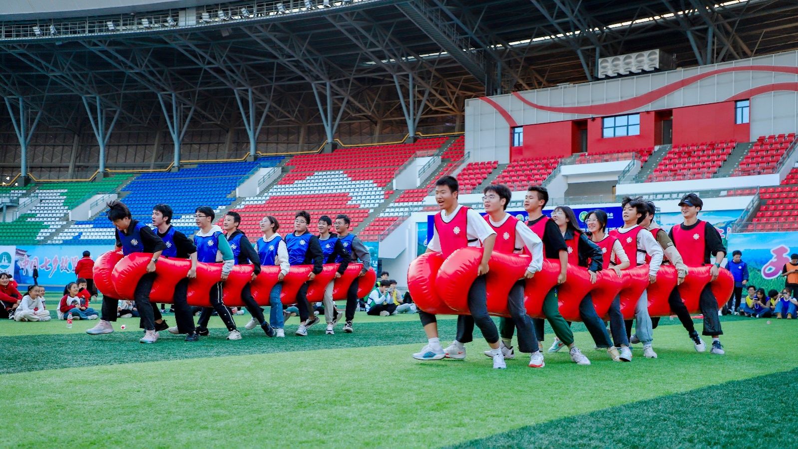 11月10日下午,beat365在线唯一官网百余名师生在郧西县文化体育中心开展趣味运动会。校团委副书记焦建杰、郧西县文旅局副局长杨波及校地工作人员参与本次活动。