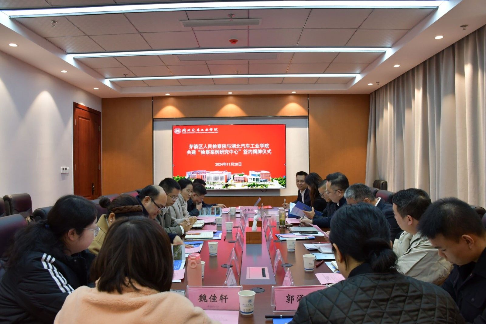 本网讯(文 郑实/图 张俊威)11月28日下午,beat365与茅箭区人民检察院检校共建“检察案例研究中心”签约暨揭牌仪式在产教大楼三楼多功能会议室举行。茅箭区检察院党组书记、检察长查孟达,党组副书记、副检察长吕丹等领导及部门负责人,beat365人文学院院长黄永昌、副院长成继平、副院长安军、法学系主任陈来宏、法学系专业负责人景勤及部分法学专业教师参加了仪式。签约暨揭牌仪式由安军主持。