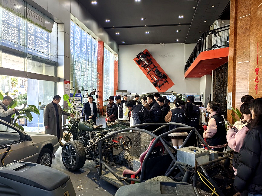 在东风故里史料陈列馆,马克思主义学院院长黄永昌为师生讲述了第二汽车制造厂的历史由来、发展历程及其重要政治经济意义。杨志金为师生讲述了东风人凝聚东风情,开展基层群众自治、改善社区街道人居环境、开展犟河治理的动人故事。在车城壹号汽车博物馆,在冯秀军董事长带领下,师生参观了个人收藏的东风EQ240卡车、东风猛士与无人驾驶新能源实体汽车。