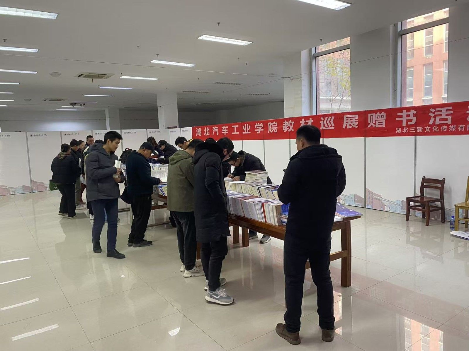 本网讯(文/图 魏婧)为做好教材服务工作,展示和推广最新的教材资源,促进教学质量的提升。12月11日,图书馆(档案馆、校史馆)与教务处联手湖北三新文化传媒有限公司,聚集国内二十余家知名出版社联合举办教材展览活动。