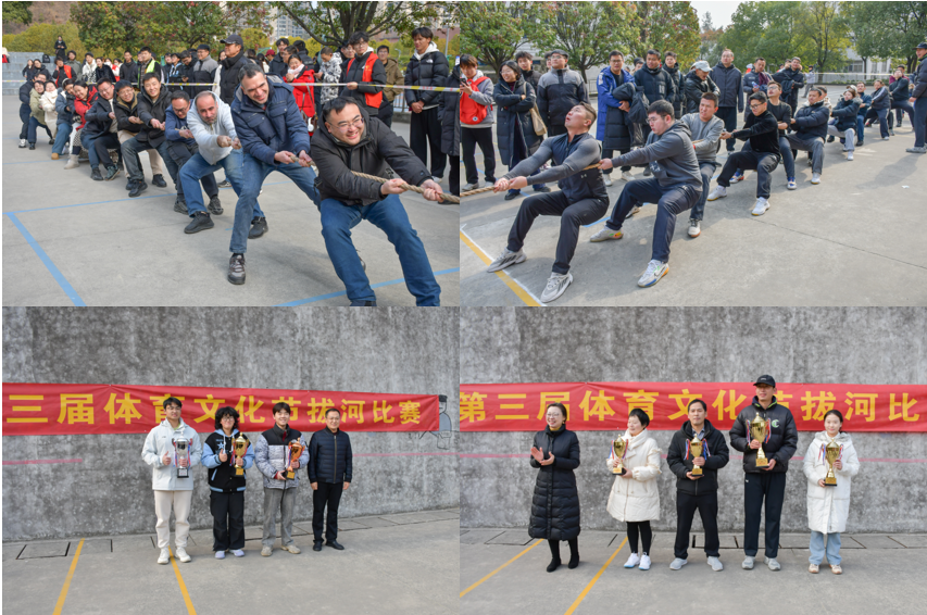 本次比赛历时四天,共有21支师生队伍、500余人参加。最终经济管理学院、体育部代表队一路过关斩将,凭借默契的团队配合和出色的力量优势分别赢得学生组和教工组冠军。杜祥军、宋涛分别为获奖单位颁发奖杯。