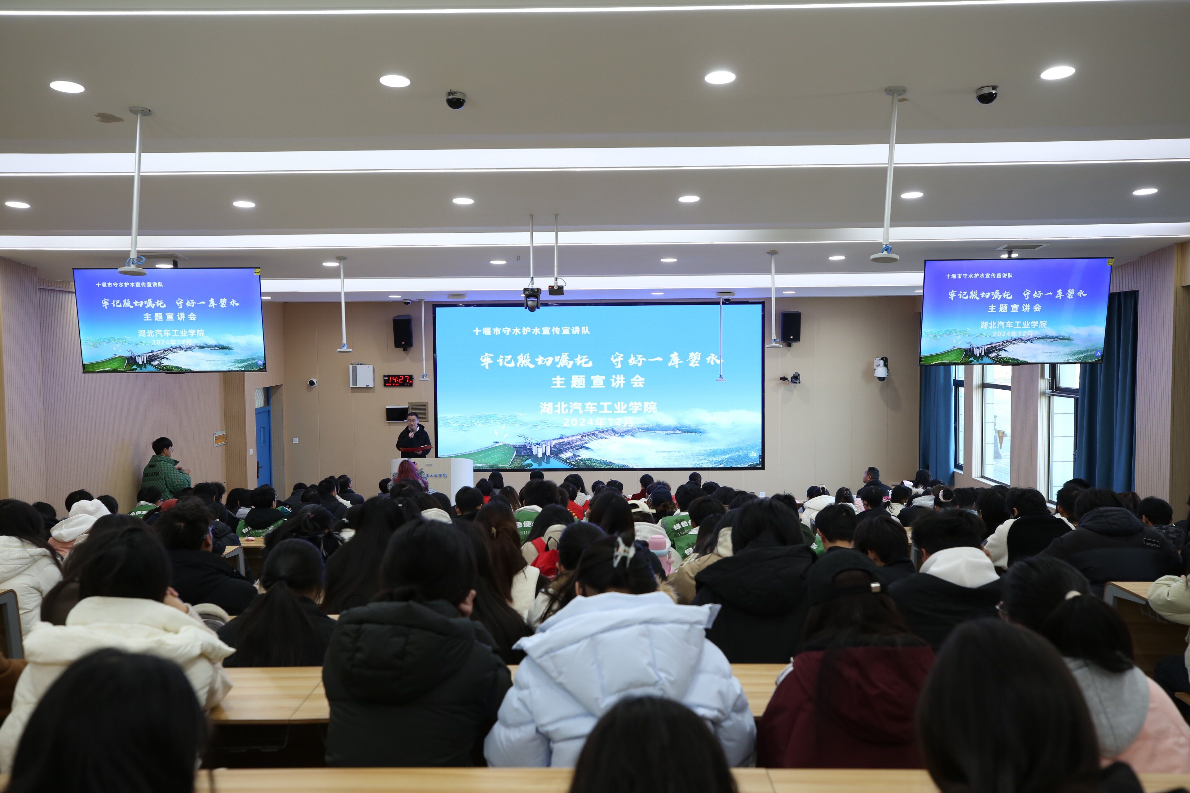 本网讯(文 刘俊/图 李一凡、曹玉满)12月23日下午,由市委宣传部主办的十堰市“牢记殷切嘱托 守好一库碧水”主题宣讲会在beat365北校区举行。十堰市委宣传部曹玉满,beat365宣传部副部长杜鹏、团委副书记焦建杰、经济管理学院分党委副书记周丹,各学院分团委书记,宣传部、团委相关负责老师,学校各志愿服务团队学生代表等200余名师生参加宣讲会。
