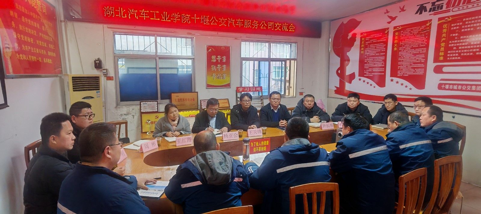 本网讯(文/图 周彬)为进一步深化产教融合,拓宽毕业生就业渠道,强化校友联络纽带,2月15日,汽车工程学院院长胡明茂、党委书记杨亚会率队赴十堰倍力管业有限公司、十堰公交服务公司等开展“访企拓岗促就业”新春专项行动及校友走访活动,聚焦校企协同育人、技术联合攻关、实习就业基地共建等领域,共绘产教融合新蓝图。学工部长王关锋、招生与就业处长李新伟等受邀共同参加活动。