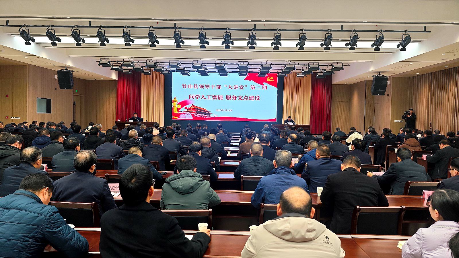 本网讯(文/李森)2月25日下午,竹山县2025年第二期“领导干部大讲堂”在县委云谷会议中心举行。继续教育学院积极响应“服务支点建设”号召,邀请校人工智能学院院长黄海波、领域专家石则云副教授以《问学人工智能,服务支点建设》为主题,为全县百余名领导干部带来一场理论与实践深度融合的专题讲座,助力地方干部队伍数字化能力提升,赋能县域经济高质量发展。竹山县委书记汪正义主持活动并讲话。
