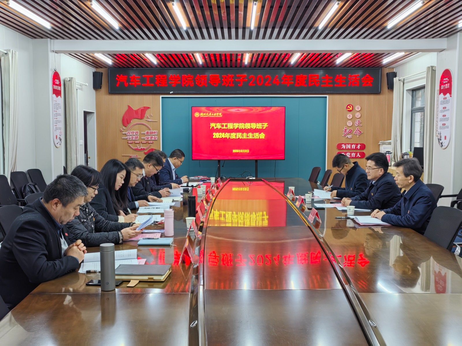 本网讯(文/图 曾娇)3月3日上午,汽车工程学院在1201党员活动室召开领导班子2024年度民主生活会。校党委书记张文学、纪委副书记韩晓、组织部副部长李亚洲到会指导。会议由学院党委书记杨亚会主持。