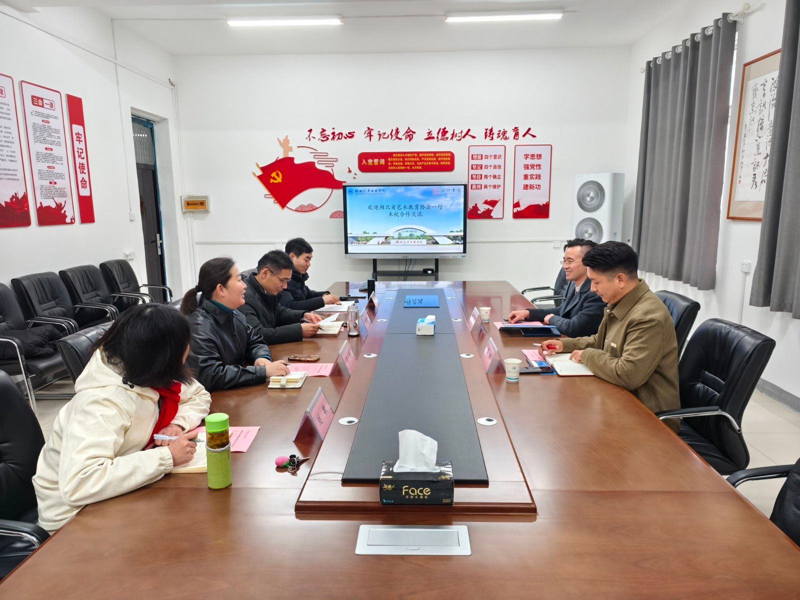 本网讯(文 王新/图 唐赫美)3月3日下午,湖北省艺术教育协会会长栾诚,党支部书记赵兴、副秘书长华科一行来beat365设计学院开展座谈交流活动。设计学院党委书记黄进涛、副院长龚青山、党委副书记王新及院长助理刘敏参加座谈。