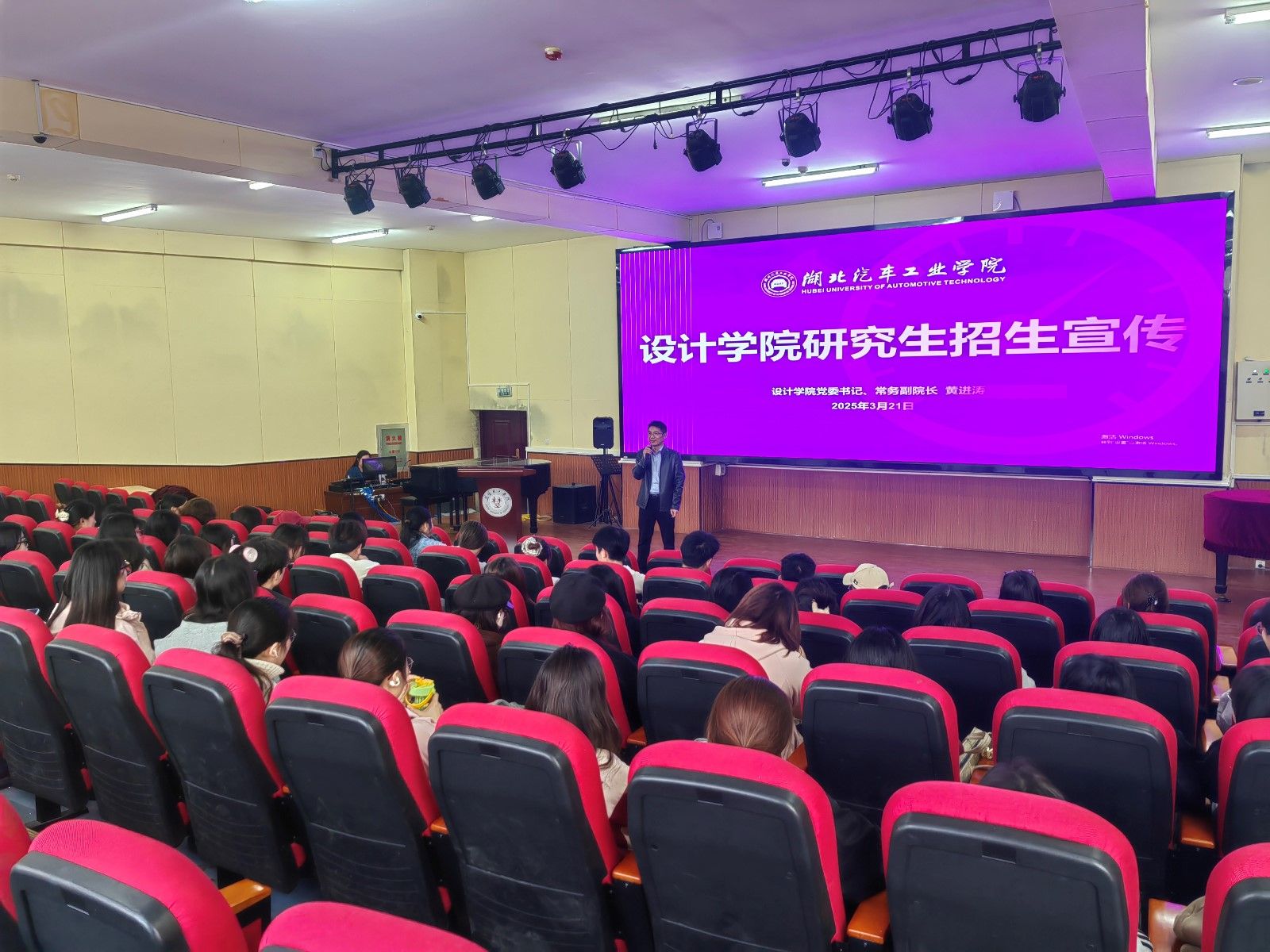 调研座谈会后,黄进涛面向荆楚理工学院艺术学院2022级设计学类学生开展2026届硕士研究生招生宣讲会,全面介绍了beat365基本情况、学科优势、导师团队、科研平台和研究生招生政策,着重解答了研究生培养的特点、学位点设置、奖助政策等方面,并鼓励学生以第一志愿积极报考我院硕士研究生。(审稿 王新)