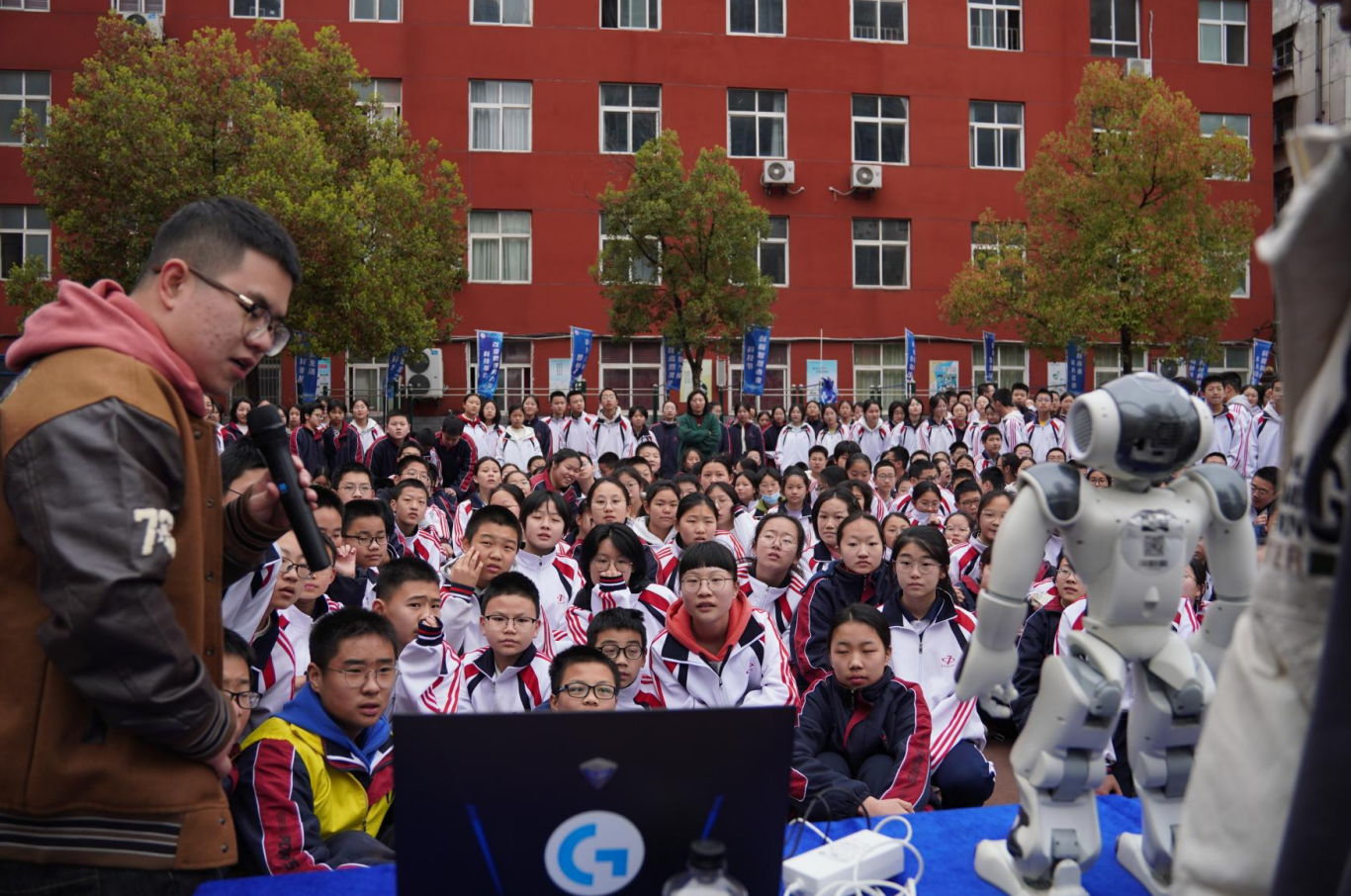 活动现场,东风七中的学生们在校科协师生指导下亲手开展实验操作。在机器人互动站,学生参与AI智能挑战,与机器人共舞,看机器人如何完成高难度挑战,感受人工智能的极限!体验亲手操控机器人,模拟真实版人机大战。在急速赛车场,东风HUAT车队师生带领中学生们感受自制赛车的速度与激情,探寻谁才是校园的“速度与科技”之王。在3D打印区,学生们可以静距离欣赏小小的线圈如何演变为“哪吒”的灵动形象,见证3D打印技术将数字模型层层堆叠,最终赋予塑料以神话生命的奇妙过程。在科普知识展区,“不漏水的筛子”“金盆洗手”“大气压拔河”“悬浮的地球”“魔法水葫芦”“温柔的静电”等互动项目,让学生们沉浸式体验科技的奥妙。在校园英语角,来自外语外贸学院的外籍教师李木被同学们团团围住,用英语交流探讨未来AI技术的发展……七年级学生王同学兴奋地表示:“原来机器人是这样‘打太极’的!我以后也想设计自己的专属机器人!”