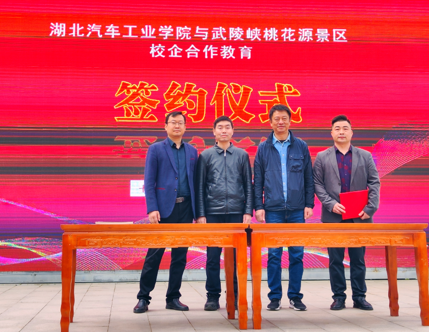 在武陵峡桃花园景区,学院与武陵峡景区签订了校企合作教育协议,官渡镇副书记余龙、桃园村党支部书张林参加了签约仪式。双方就写生实习基地建设、文创产品开发进行了深入交流。