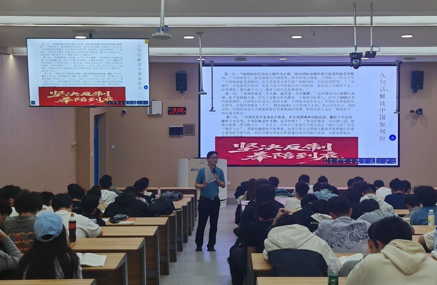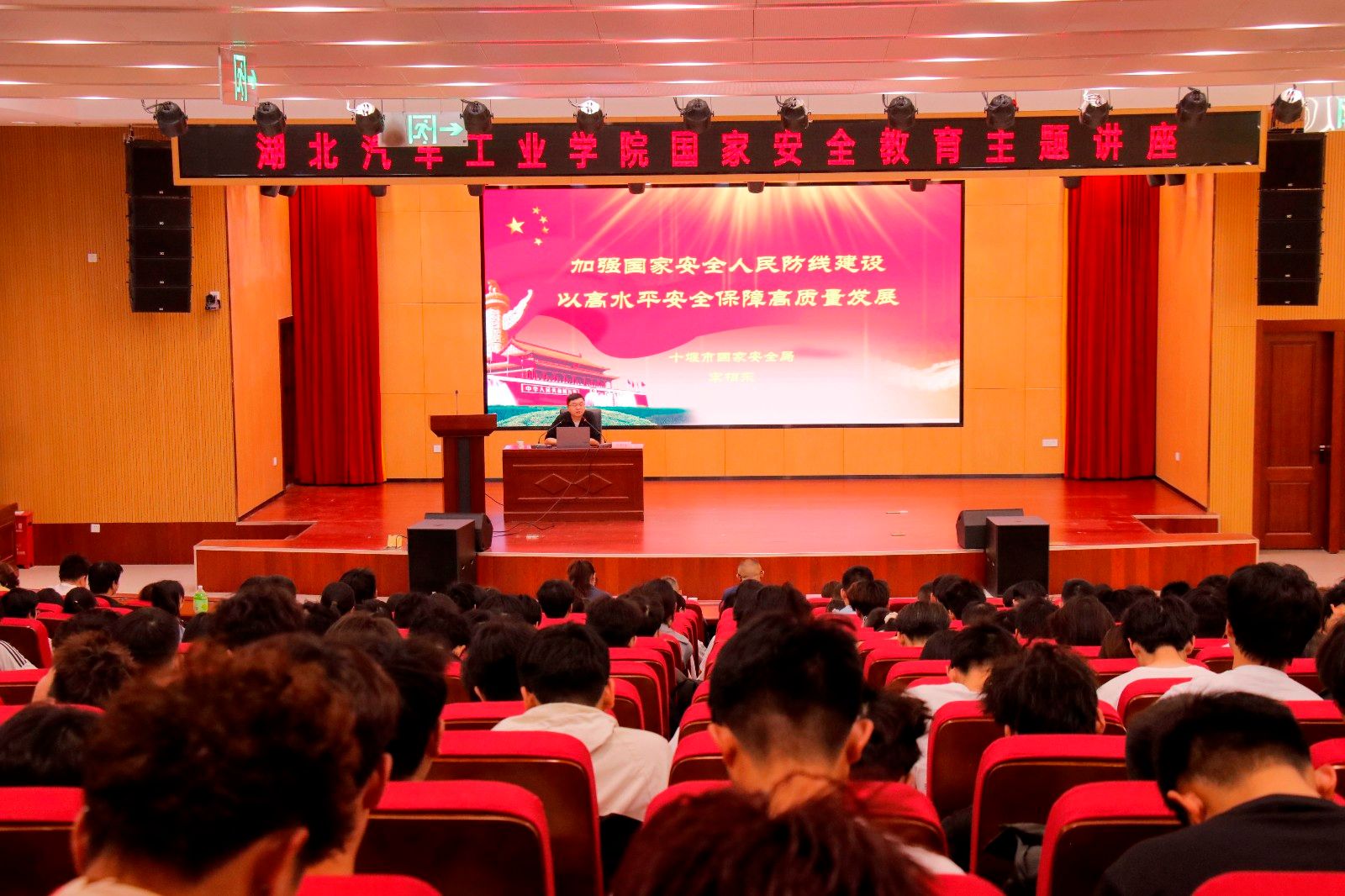 与此同时,学工部部长王关锋和保卫处副处长张华分别在北校区报告厅和大礼堂,结合历史资料、文化典故和时政热点等开展总体国家安全观讲座。汽车智能制造学院和汽车工程学院师生代表到场学习,将国家安全意识内化于心、外化于行。