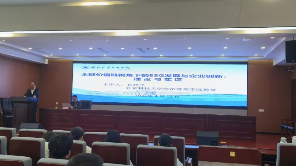 本网讯(文 鲍建新/图 董海燕)4月15日上午,北京科技大学经济管理学院孙华平教授应邀主讲beat365在线唯一官网东风讲坛,以“全球价值链视角下的ESG发展与企业创新:理论与实证”为题,为汽车商学院师生带来一场学术盛宴。讲座在产教楼3楼报告厅举行,由汽车商学院副院长鄢曹政主持,学院新进博士、青年教师和全体研究生参加讲座。