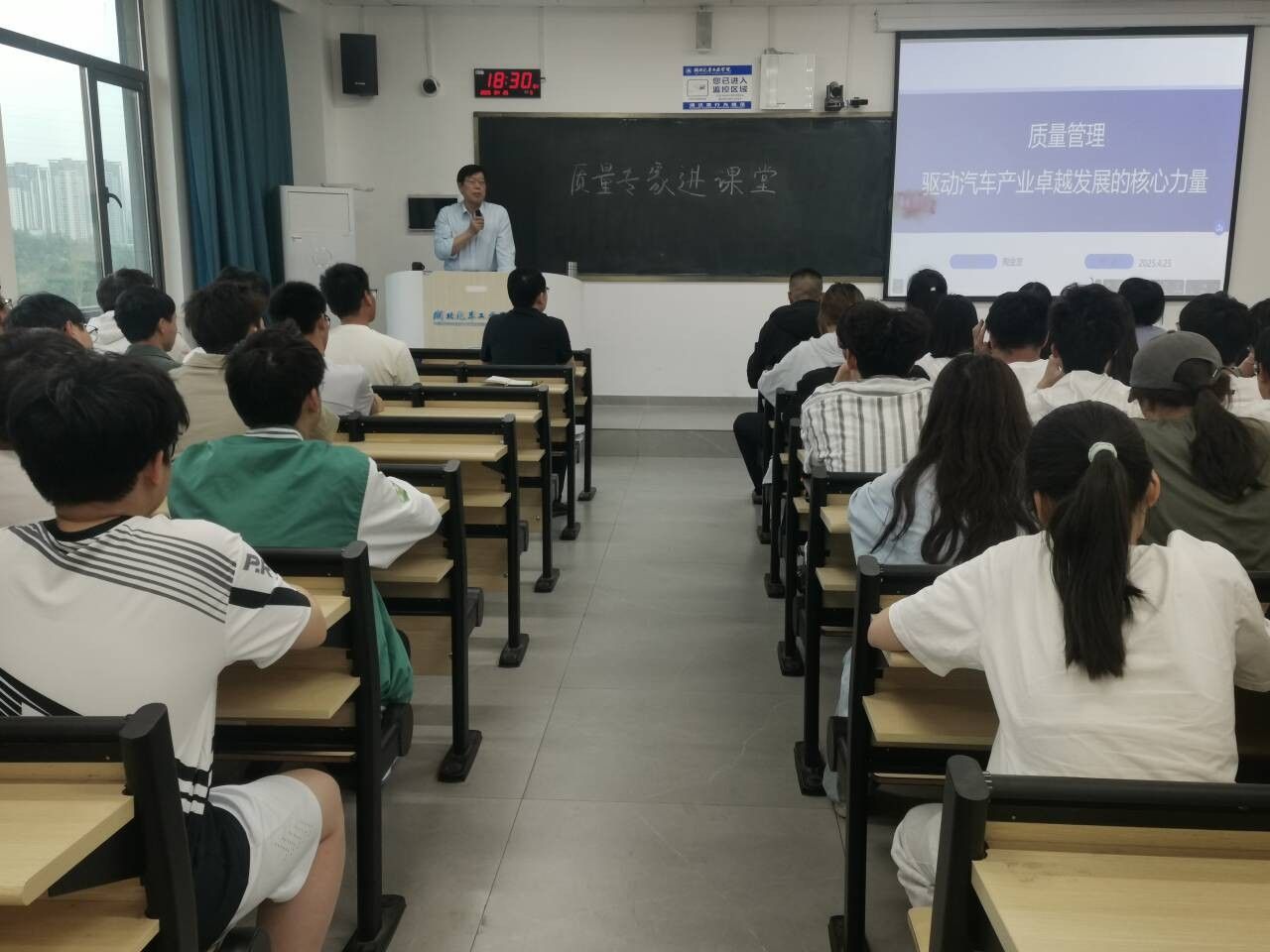 讲座中,陶金发凭借多年汽车行业质量管理经验,以实际案例切入,深度剖析质量管理对汽车产业保持竞争力、实现可持续发展的关键作用。谈及行业趋势,他指出,随着汽车产业智能化、电动化进程加速,质量管理人才需求将持续攀升,并勉励学生做好职业规划,锚定目标提前储备能力。