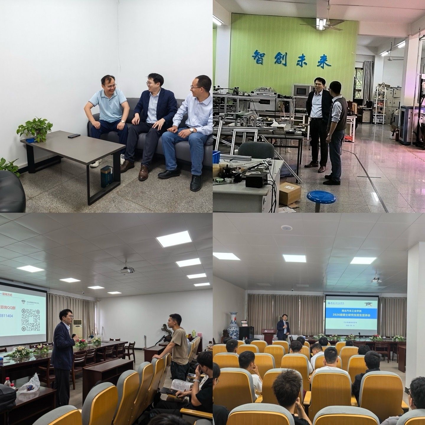 本网讯(文/图 郑樱、张泉勇)为拓展2026级硕士研究生优质生源,深化校际协同创新,汽车智能制造学院宣讲团于5月15日至16日赴武汉四所高校及湖北理工学院开展调研交流及研究生招生宣传,全方位展示学科实力与培养特色,推动跨校合作共谋发展。