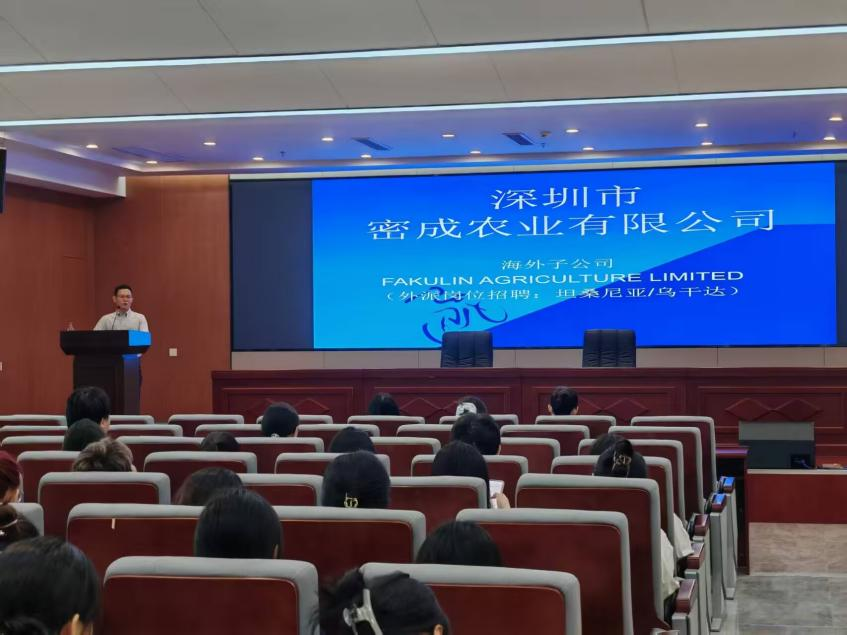 本网讯(文/曹珍珠)为拓宽国际化就业渠道,5月22日,外语外贸学院特邀深圳市密成农业有限公司来校在产教融合大楼三楼报告厅举办毕业生赴坦桑尼亚、乌干达就业专场宣讲会。