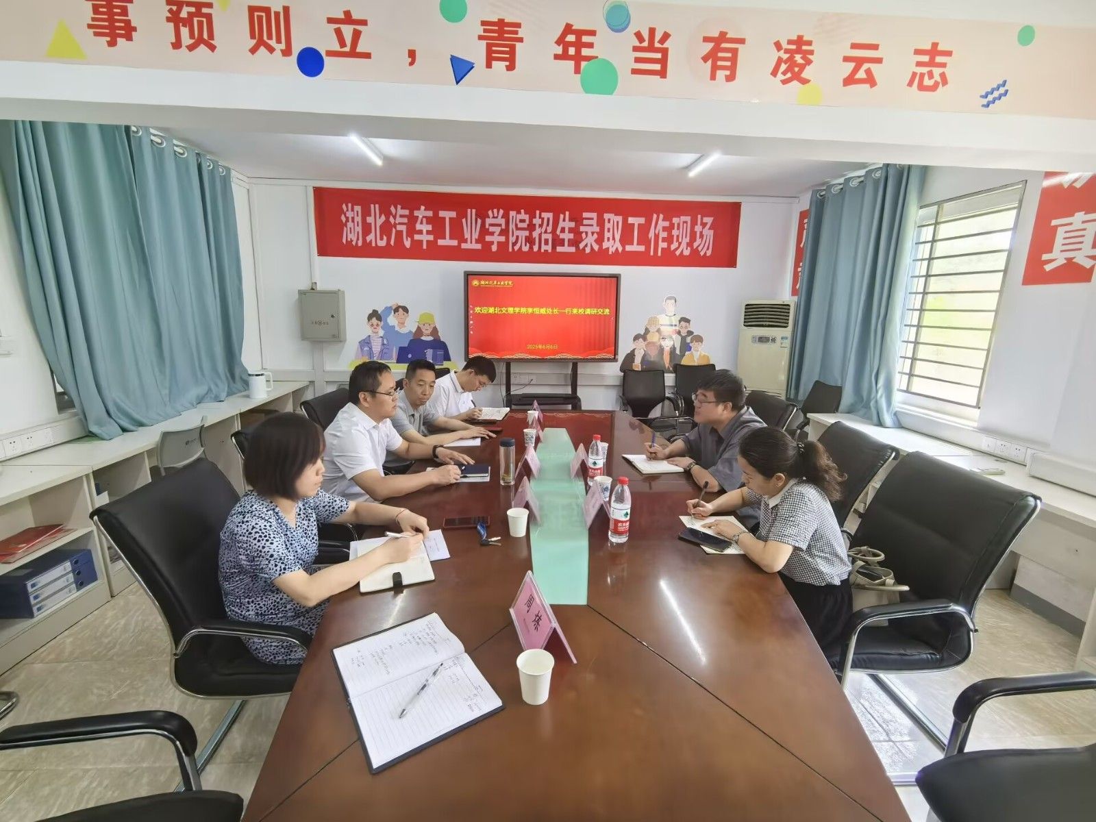 本网讯(文/金涛)6月6日上午,湖北文理学院招生就业工作处处长李恒威一行来校调研交流,学校招生与就业处有关负责人陪同调研,双方在招就楼101会议室开展了座谈交流。