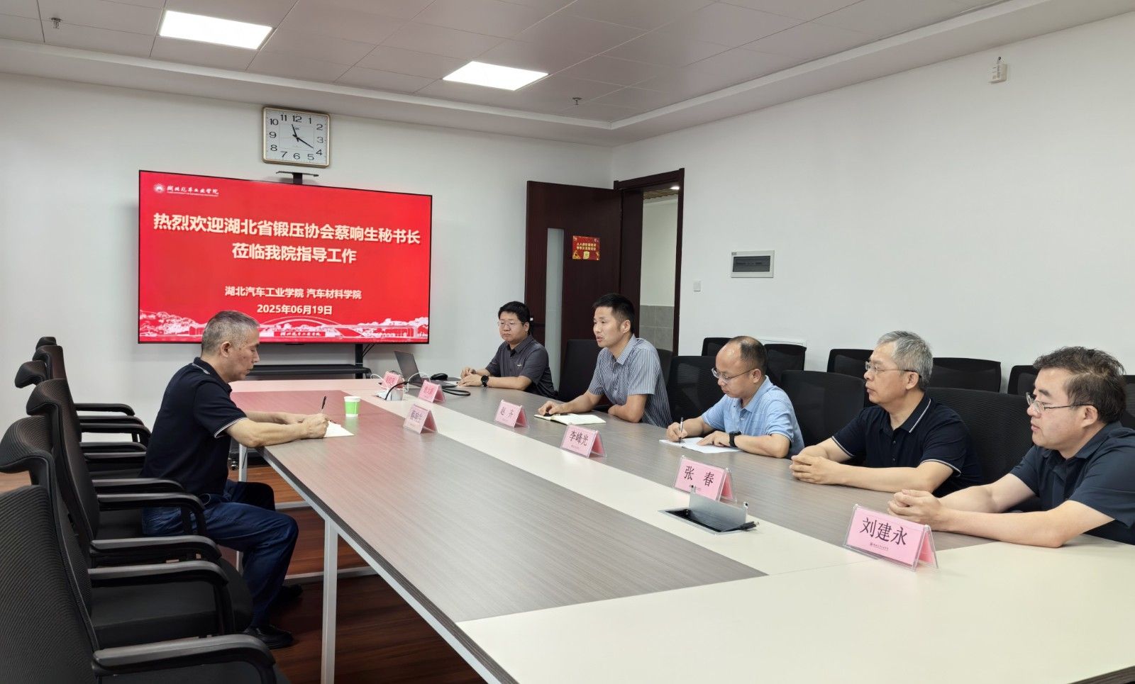 赵齐代表学院对蔡响生的莅临表示欢迎,并向协会介绍了学校的基本情况及汽车材料学院的发展历程、专业建设、人才培养和产学研服务等方面情况。他表示,湖北省锻压协会服务于省内锻压行业,我院已有4位教师入选湖北省锻压协会首批专家智库,期待与协会在高校对接企业深度产学研合作、专业硕士研究生实习实践、承办协会学术会议等方面展开深度探讨,发挥高校科技创新作用,服务我省企业技术高质量发展。