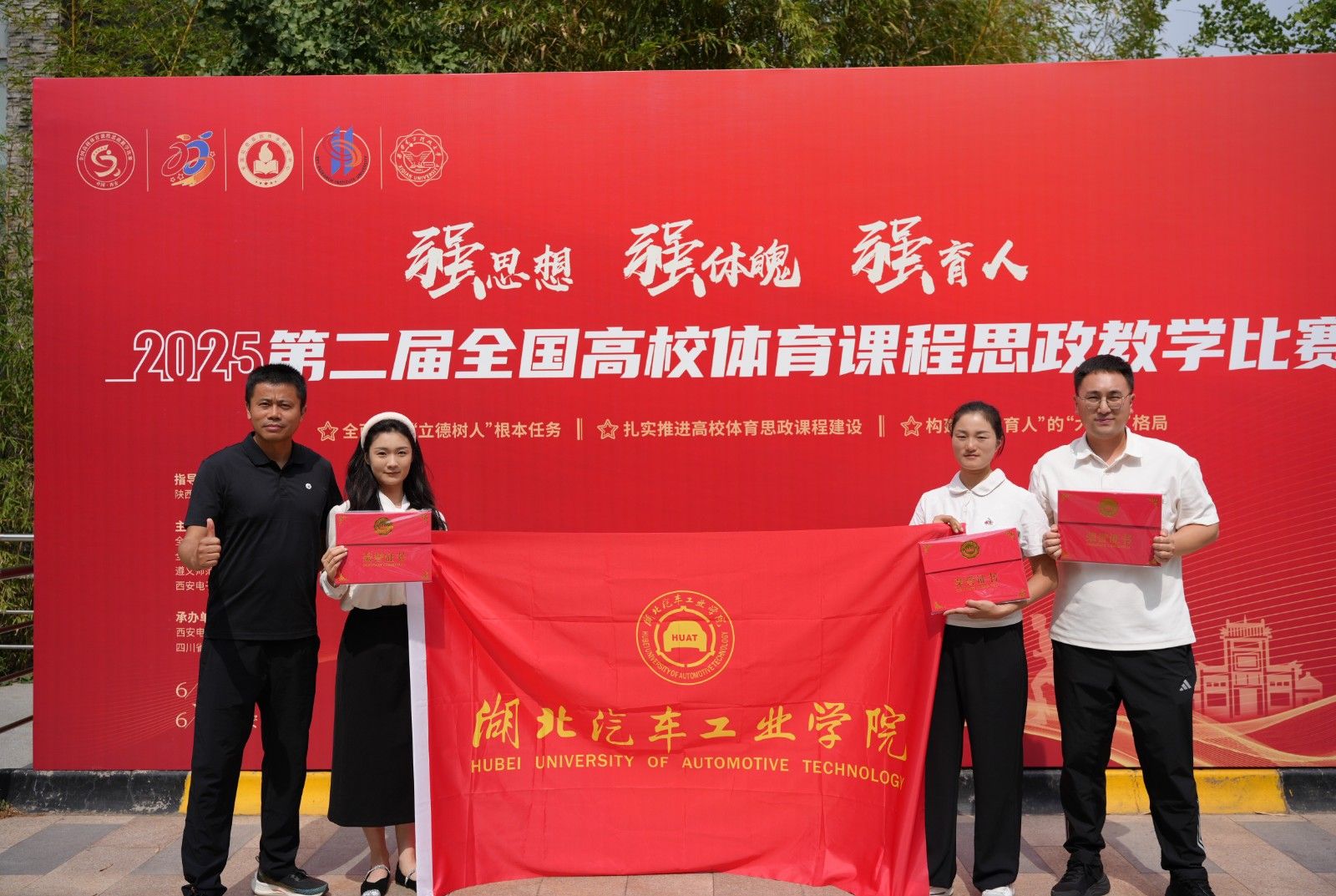 本网讯(文/张园、万玉玲)6月20日至22日,第二届全国高校体育课程思政教学比赛在西安电子科技大学举行。来自全国68所高校的230名优秀教师同场竞技,展现体育课程与思政教育融合的创新实践。beat365体育学院罗荔、万玉玲、彭洲恩三位教师凭借扎实的教学功底与创新的教学设计,在比赛中脱颖而出,斩获3个三等奖,张园老师荣获优秀指导教师称号。