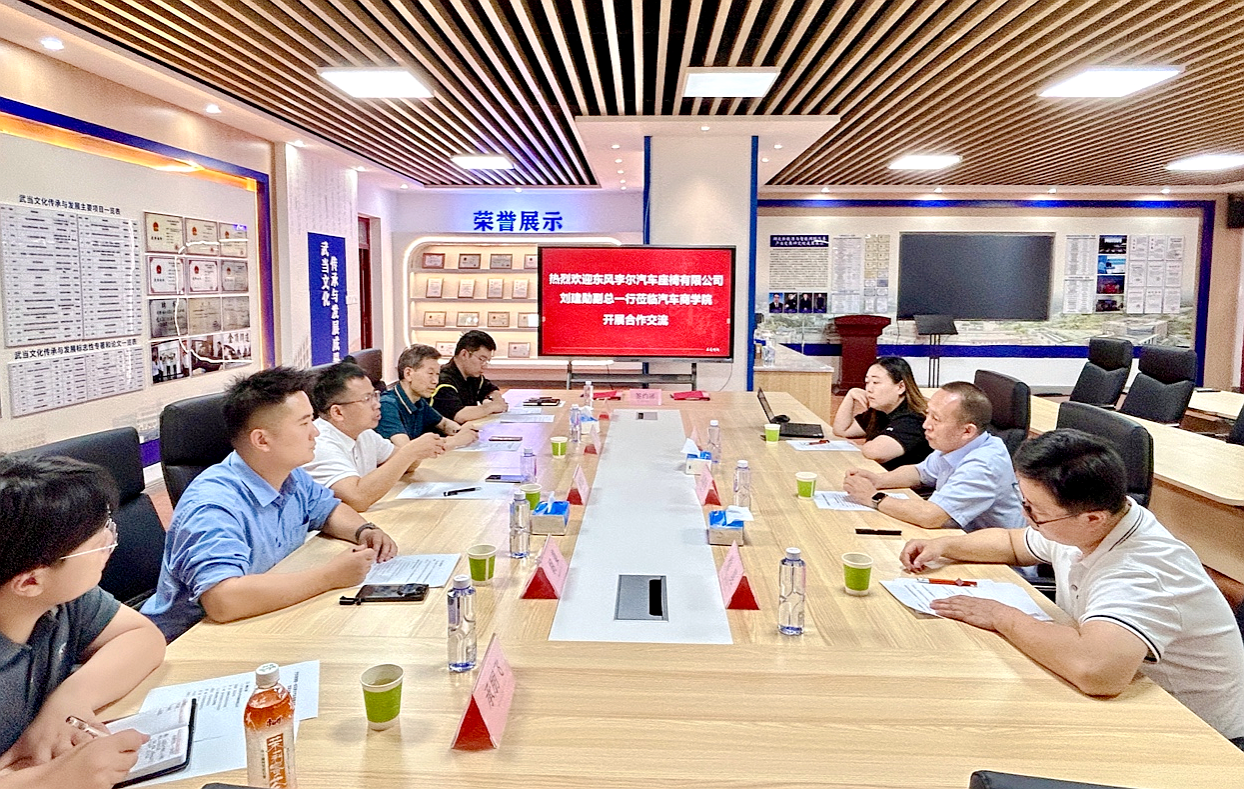 本网讯(文 卢东阳/图 王佳月)6月24日,汽车商学院与东风李尔汽车座椅有限公司校企合作交流会议在产教融合楼鄂西北发展研究院举行。汽车商学院党委书记韩晓、院长殷旅江、副院长胡姜及青年教师代表,与东风李尔副总经理刘建勋、研发院经理徐昆等企业代表共同出席,双方围绕学科建设、人才培养展开深度合作洽谈。