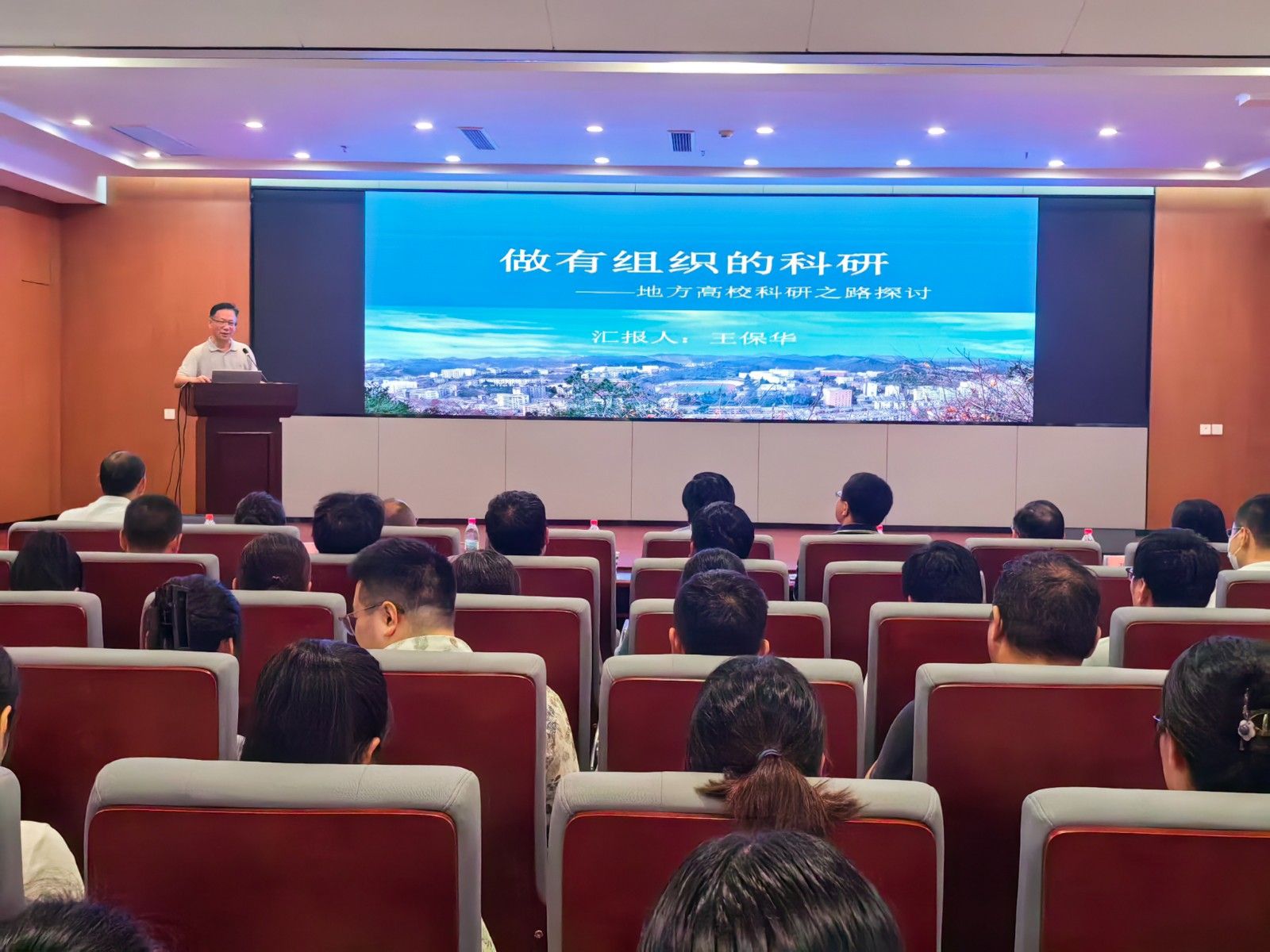 会上,三位嘉宾围绕科研工作作专题分享。王保华教授以“做有组织的科研——地方高校科研之路探讨”为主题,剖析地方高校科研挑战与发展路径;梅建伟教授结合实践,分享“解企业之需,育自身之才”的横向课题驾驭经验;李峰光教授聚焦国家自然科学基金申报,解读流程、现状并答疑解惑。