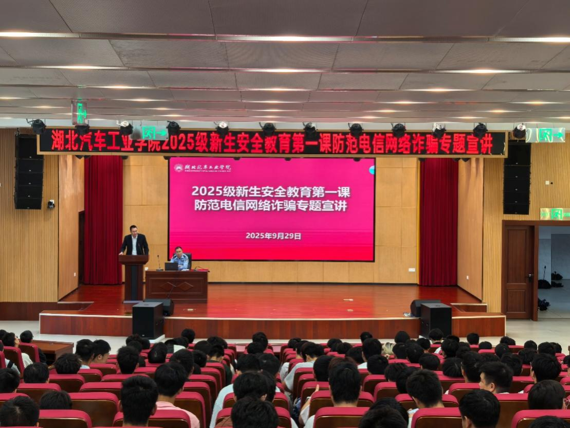 本网讯(文 张峻萍/图 薛树森、吴绍龙)9月29日下午,车城西路派出所韦子永警官、张湾区消防救援大队凯旋大道消防站向召朋参谋应邀来校,在产教大楼四楼报告厅为2025级新生开展安全教育专题讲座。讲座聚焦治安防范与消防安全两大主题,通过理论讲解、案例剖析和实操体验,打造生动实用的“校园安全课”。