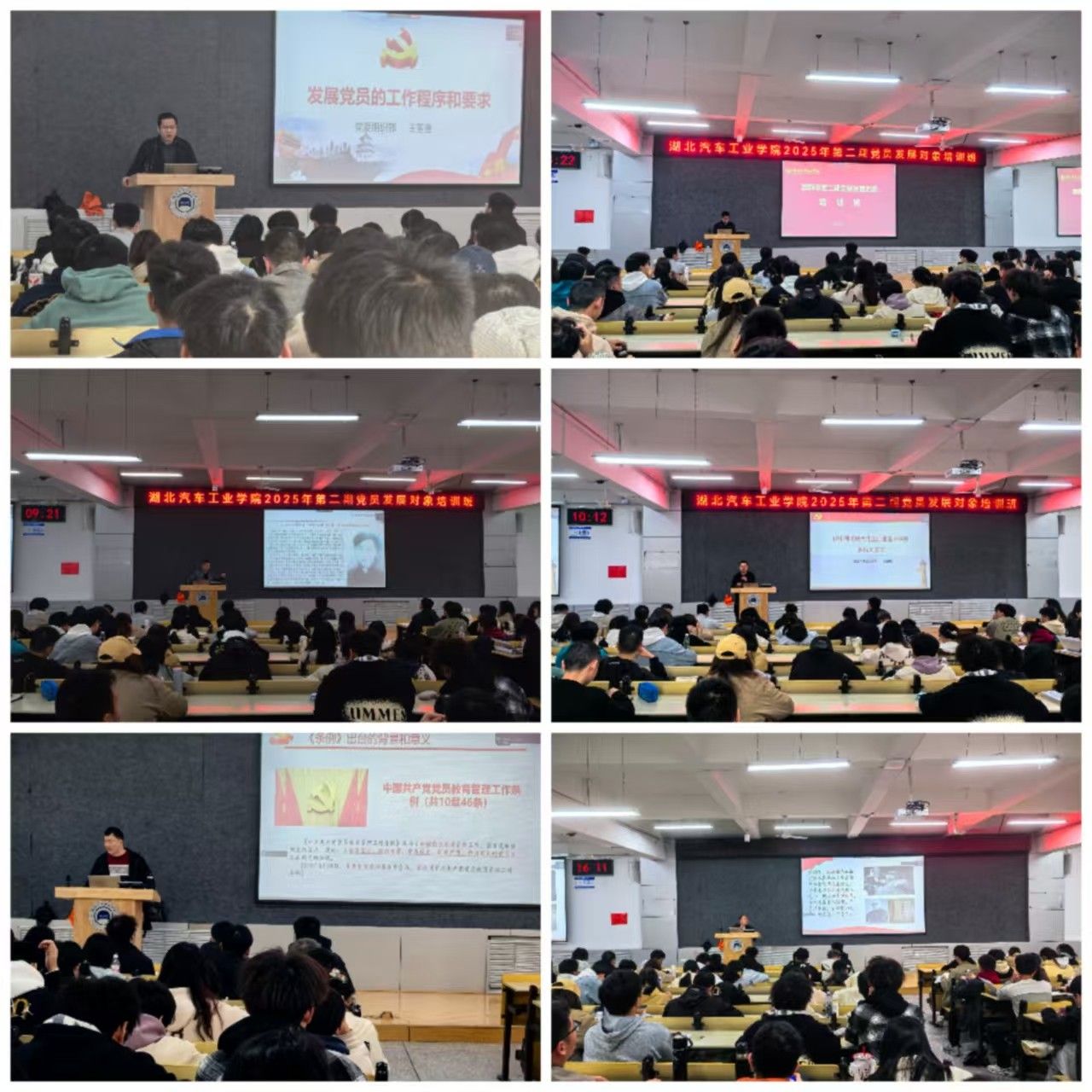 马克思主义学院党委书记计毅波作了“党的作风建设永远在路上—深入学习贯彻中央八项规定精神”报告;组织部组织科科长王雪雪作了“发展党员的工作程序和要求”报告;马克思主义学院副教授刘明辉分别作了“《中国共产党章程》解读”和“以中国式现代化全面推进中华民族伟大复兴”报告;马克思主义学院副教授严忠良作了“汲取党史伟力 谱写辉煌篇章”报告。