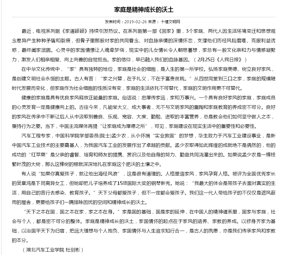 【十堰文明网】家庭是精神成长的沃土