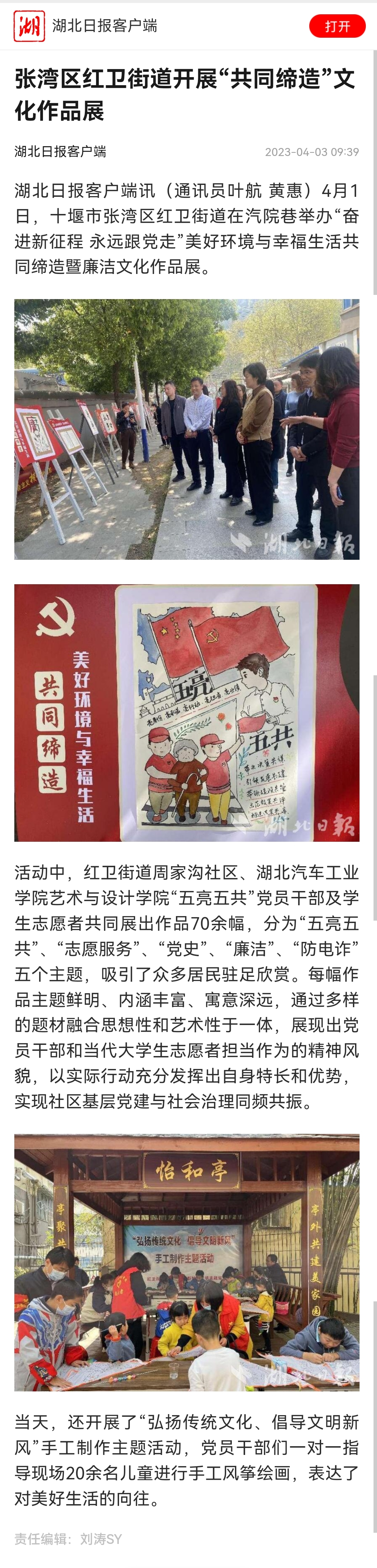 【湖北日报】汽院与张湾区红卫街道携手开展“共同缔造”文化作品展