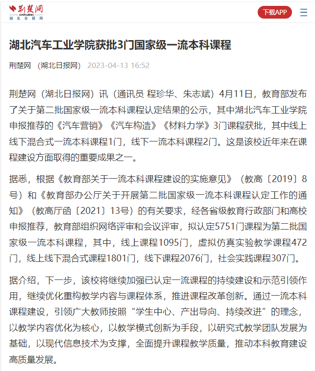 【荆楚网】beat365在线唯一官网获批3门国家级一流本科课程
