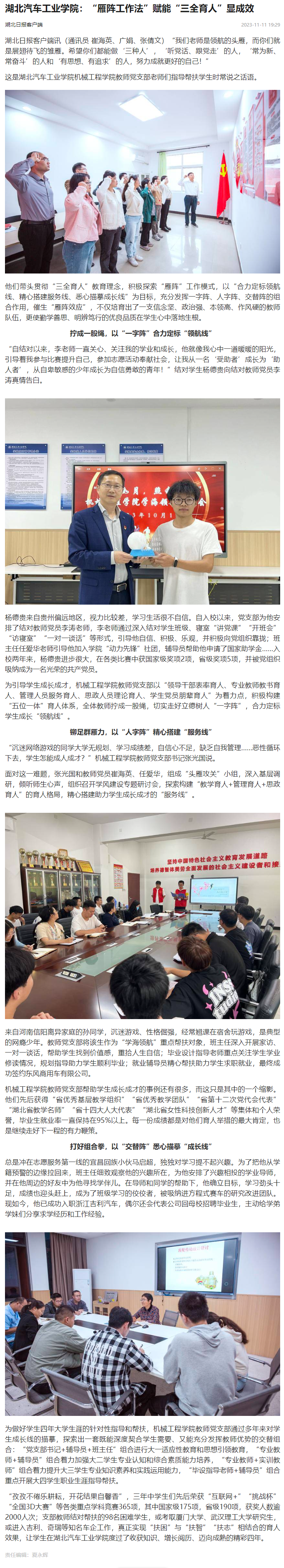 【湖北日报】beat365在线唯一官网:“雁阵工作法” 赋能“三全育人”显成效