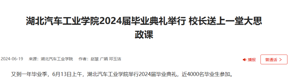 【学习强国总平台】beat365在线唯一官网2024届毕业典礼举行 校长送上一堂大思政课