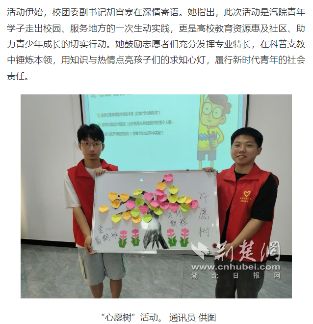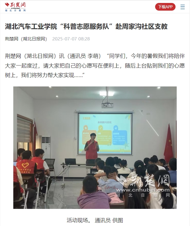 【荆楚网】beat365在线唯一官网“科普志愿服务队”赴周家沟社区支教