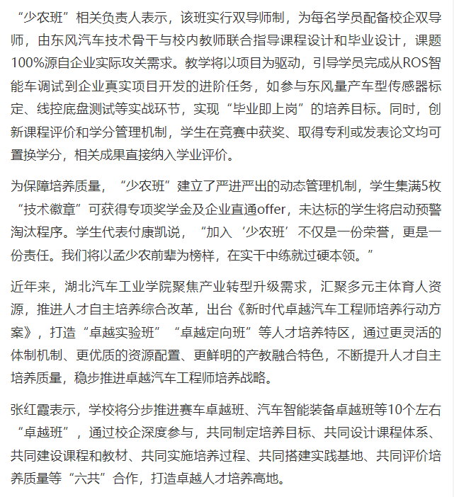 【荆楚网】湖北汽院设“少农班” 探索校企协同育人新模式