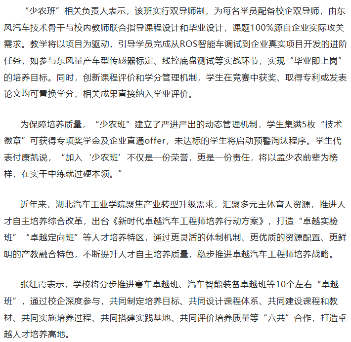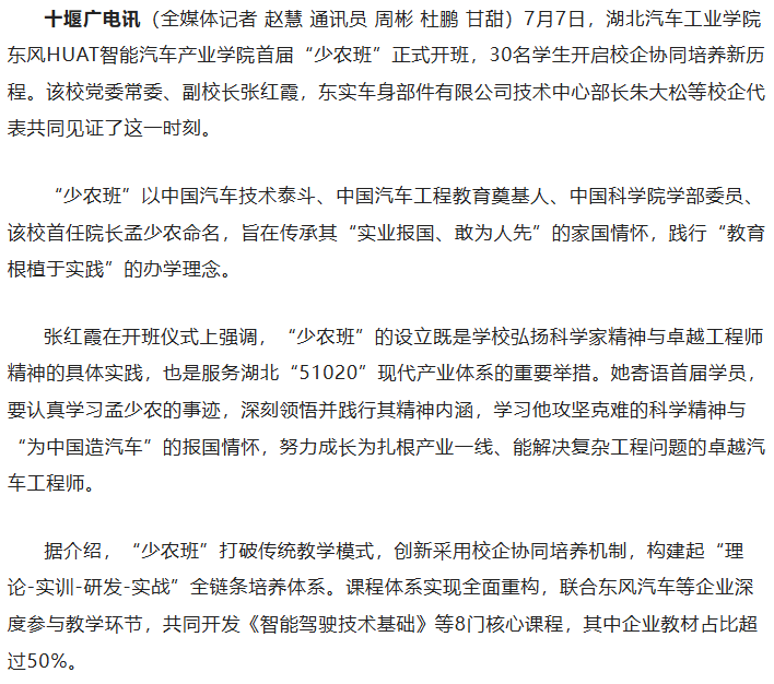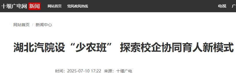 【十堰广电】湖北汽院设“少农班” 探索校企协同育人新模式