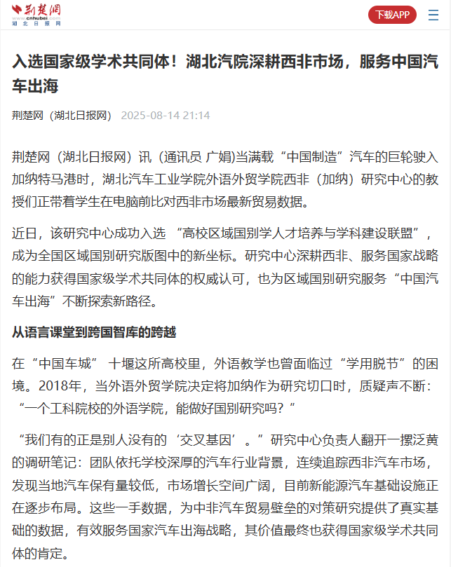 【荆楚网】入选国家级学术共同体!湖北汽院深耕西非市场,服务中国汽车出海