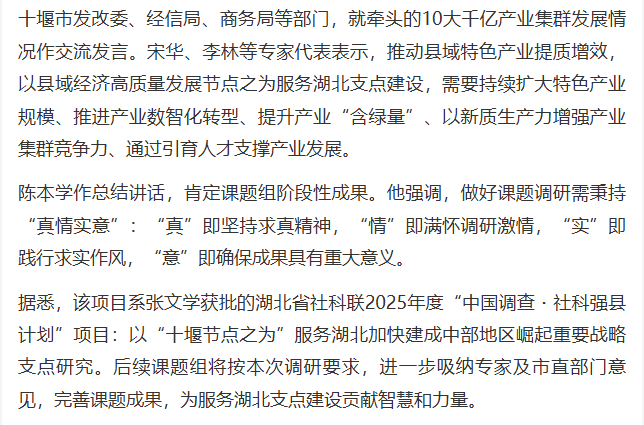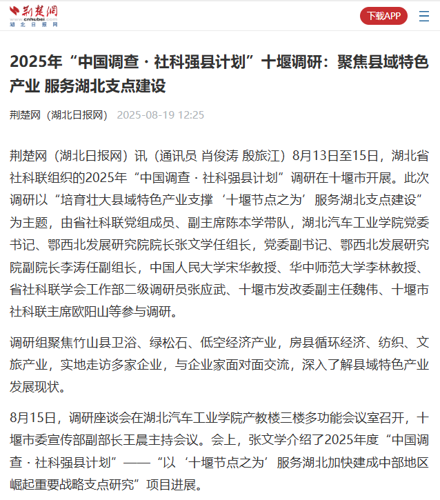 【荆楚网】2025年“中国调查・社科强县计划”十堰调研:聚焦县域特色产业 服务湖北支点建设