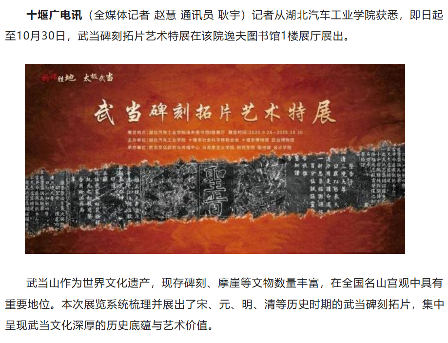 【十堰广电】武当碑刻拓片艺术特展在beat365在线唯一官网开展