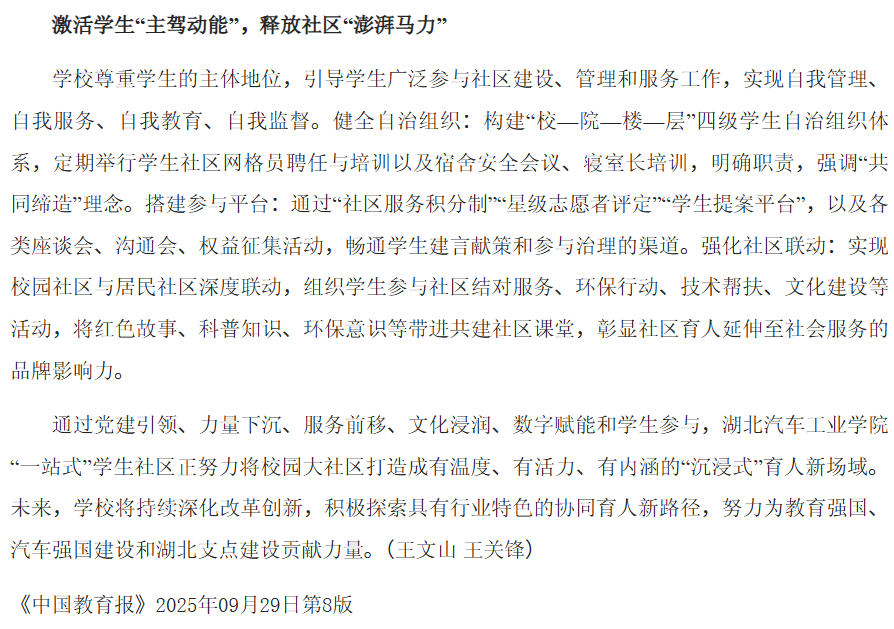 【中国教育报】beat365在线唯一官网:建强“一站式”社区 打造“沉浸式”育人场域