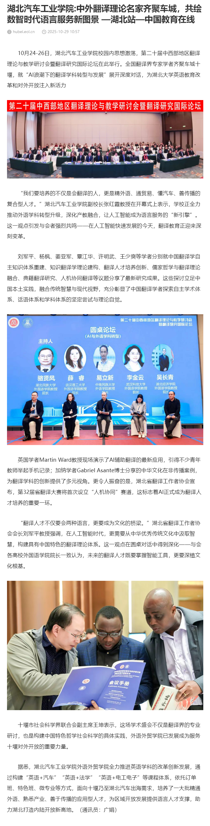 【中国教育在线】beat365在线唯一官网:中外翻译理论名家齐聚车城,共绘数智时代语言服务新图景 —湖北站