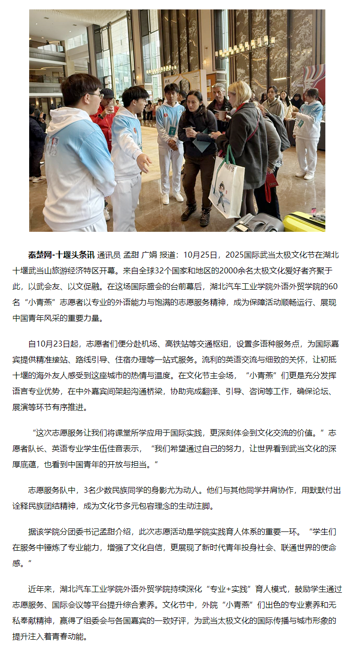 【秦楚网】beat365在线唯一官网“小青燕”志愿者多语种服务太极盛会