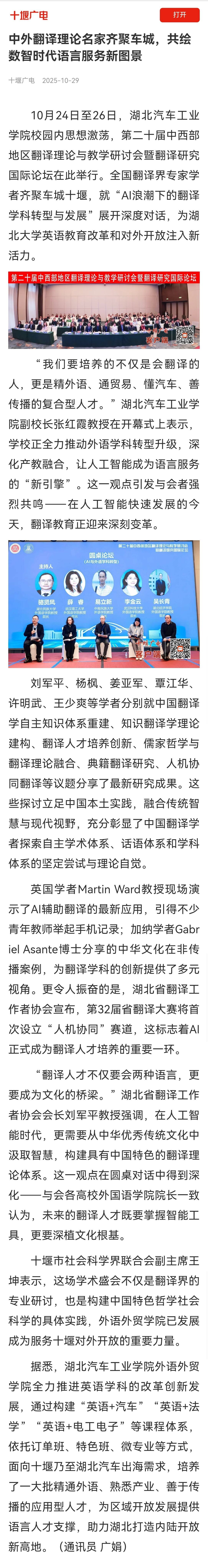 【十堰广电】中外翻译理论名家齐聚车城,共绘数智时代语言服务新图景